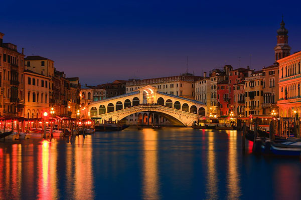 +Chiều Đoàn khám phá thành phố VENISE với Ponte Dei Sospiri – Cầu Than Thở nằm giữa trung tâm thành phố, Quảng trường Saint Marc, nhà thờ BASILIQUE có kiến trúc độc đáo nhất tại VENISE và đặc biệt nhất là cây cầu RIALTO chỉ có 1 nhịp dài đến 48m nằm bắt qua Kênh Lớn, Quý khách thả bộ ngắm cảnh hoàng hôn thơ mộng lãng mạn, thỏa sức mua sắm tại khu thương mại sầm uất của thành phố. An tối, nghỉ ngơi qua đêm tại VENISE.